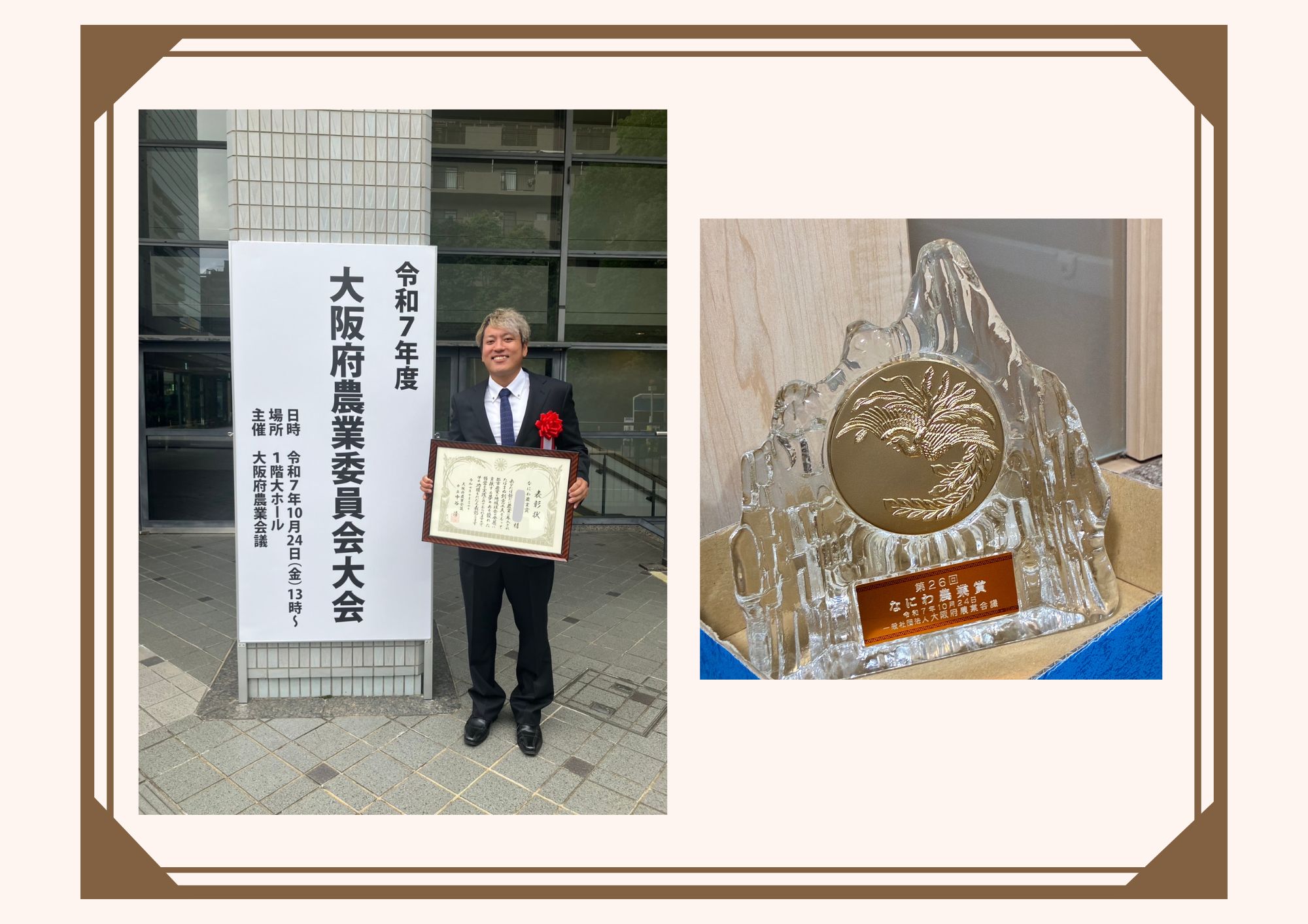 令和7年「なにわ農業賞(新規就農者部門)」を受賞致しました。これからも初心を忘れずに大阪の農業を盛り上げられたらと思います。